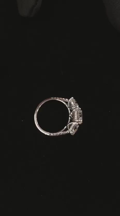 - Custom 3-Stone Engagement RIng with 2.04 ct D VS1 Center Accompanied by 1.04 D VS1 Diamonds in a 14k White Gold Cathedral Setting. Total CT: 4.385
